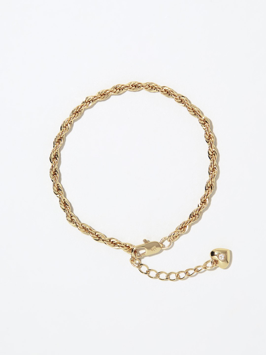 Your wrist is missing this gold twisted chain bracelet with a heart extender co-designed with Lisa Rhee, dancer and YouTube superstar. Carefully handcrafted and dipped in 14k gold, this chain bracelet is feminine and loveable. With adjustable size due to its gorgeous extender, this gold bracelet is as practical as it is stylish.