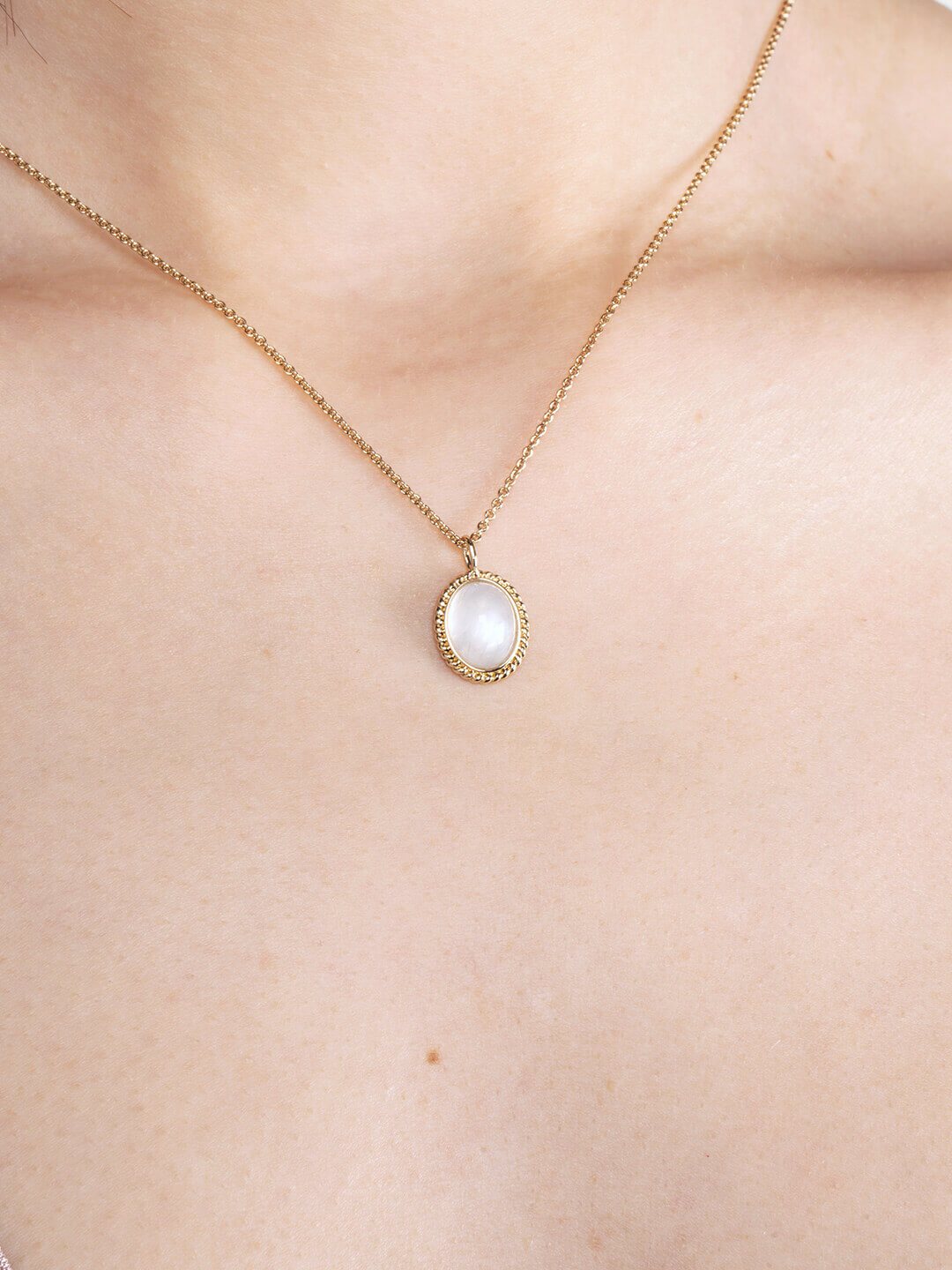Tap into the stunning elegance of antique jewelry with this moonstone necklace featuring a natural moonstone in a bezel setting. Inspired by the beauty of Victorian jewelry, this moonstone necklace is handcrafted and dipped in 14k gold. Add this unique & limited-edition necklace to your jewelry collection before it’s out of stock.