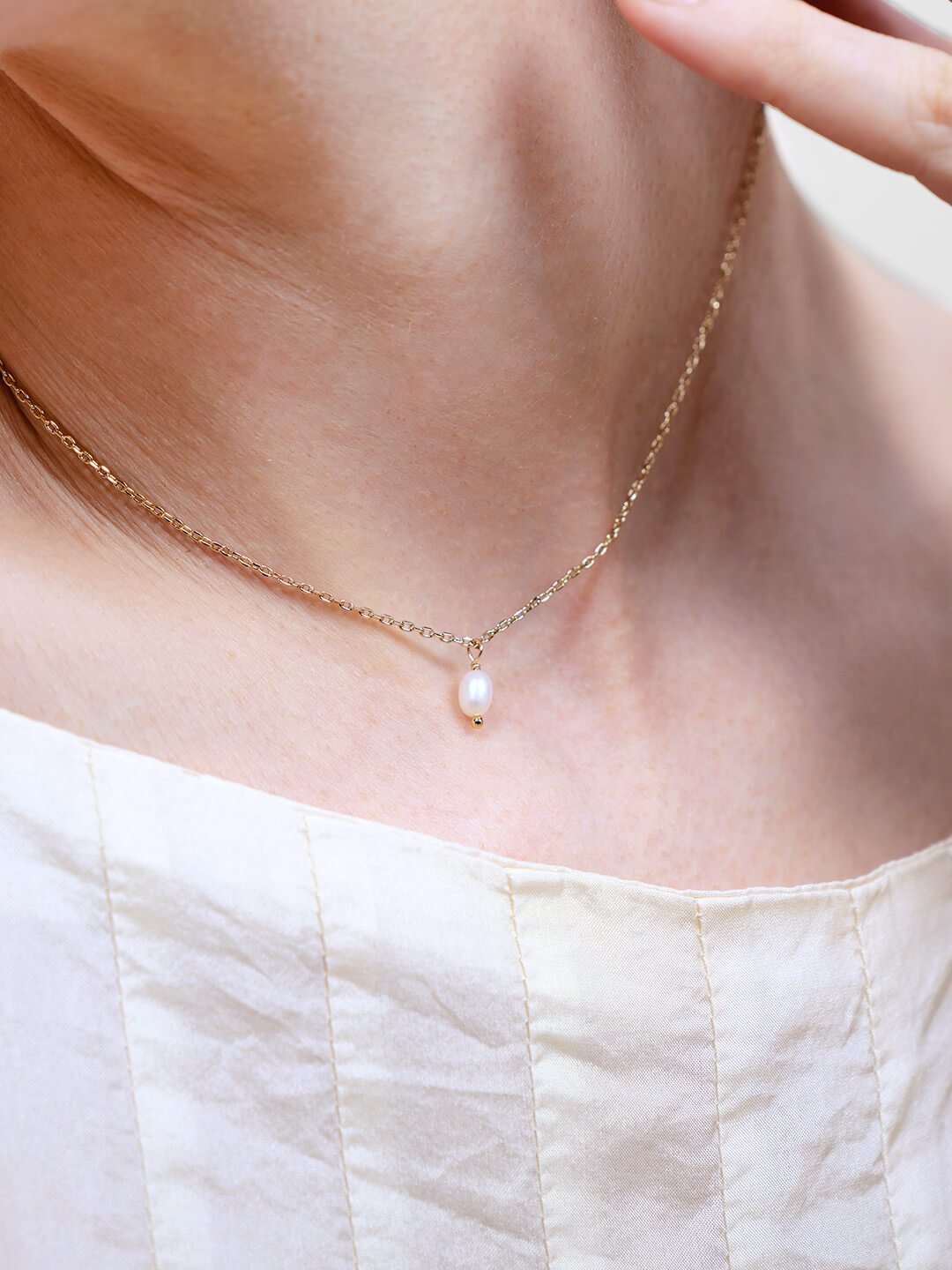 Show your love for pearls every single day with this delicate & gorgeous pearl necklace. Versatile and dainty, this gold necklace features a durable gold chain and a freshwater pearl with high luster. Have fun styling this fab pearl necklace with gold statement earrings, an A-line navy dress, and colorful sandals.  Be feminine and elegant with this dainty pearl necklace that you get to wear with all your favorite outfits.