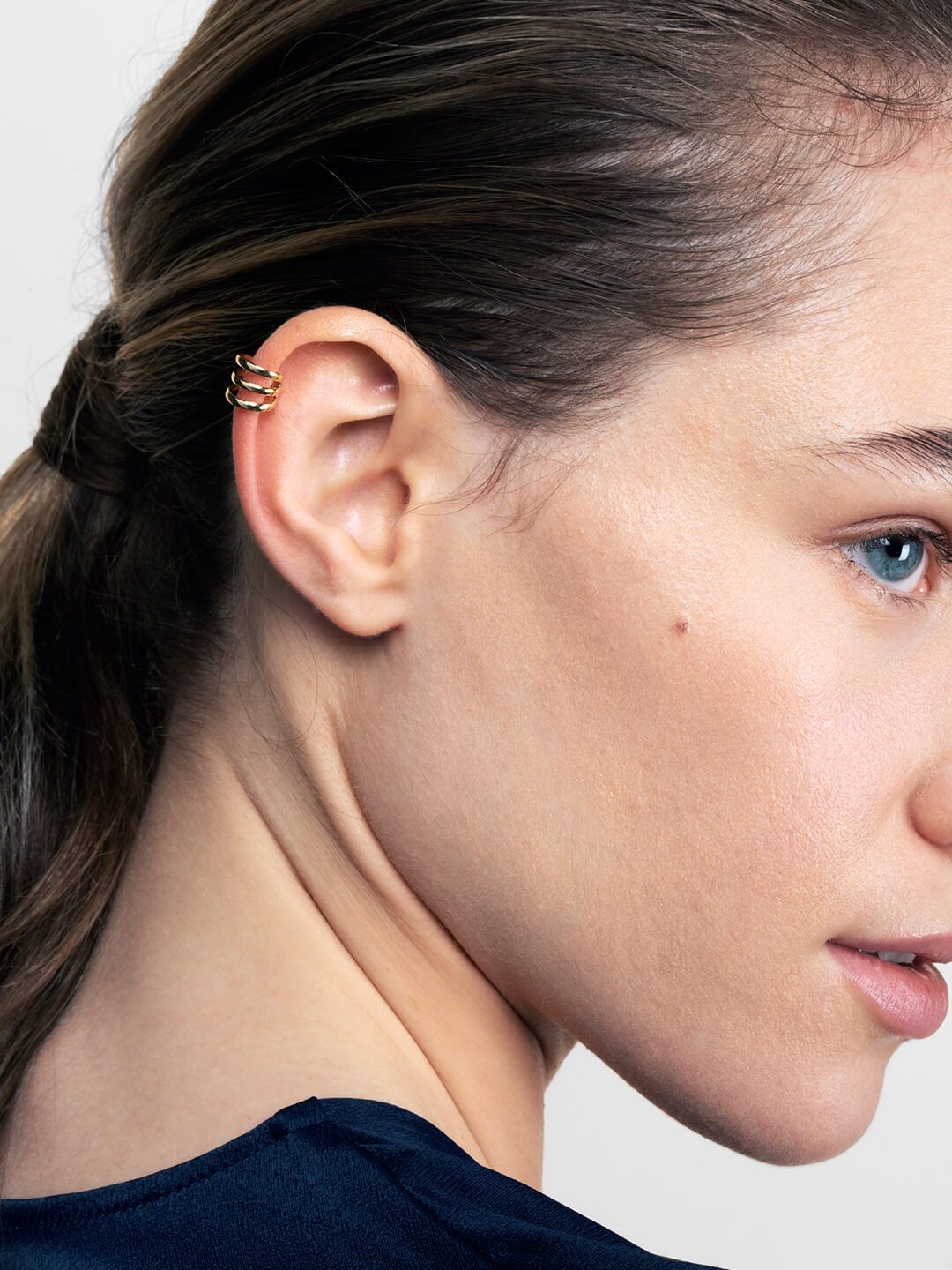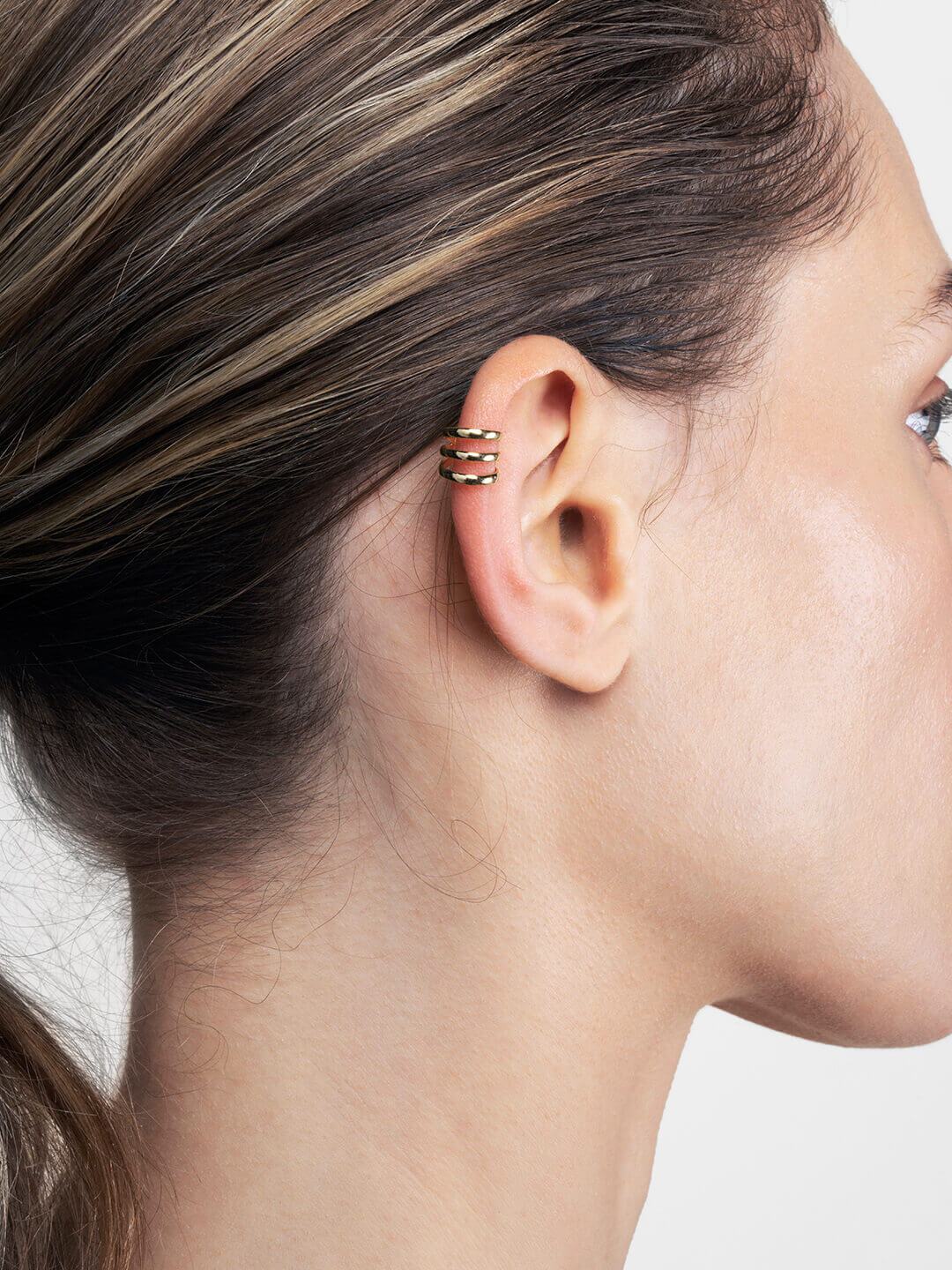 Effortlessly chic, this cartilage cuff embraces your ear in style without requiring any piercing. Handcrafted with attention to detail and dipped in 14k gold, this single ear cuff is easy to slide on your ear and really comfortable to wear. Give it a try and add it to your shopping cart now.