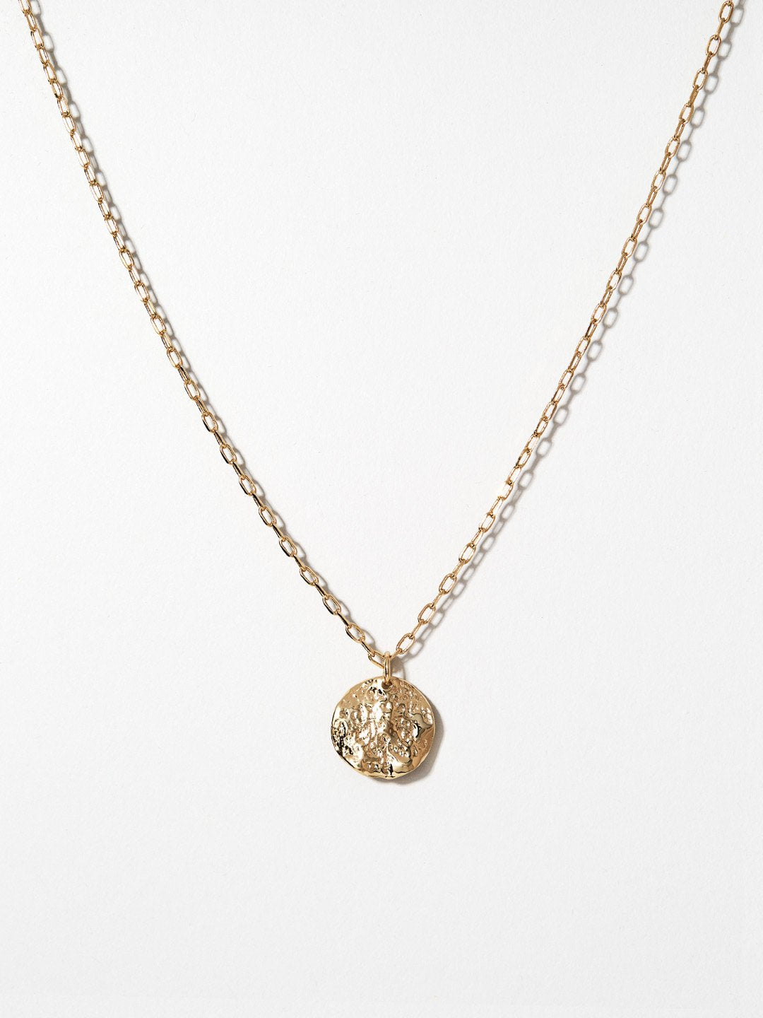 The Margot necklace is a co-creation with fashion influencer @margot.lee. This easy-to-wear small textured coin necklace features a sturdy link chain and a coin pendant with a unique pattern. Wear it with a solid color turtleneck and tailored trousers to get a smart-casual irresistible look.