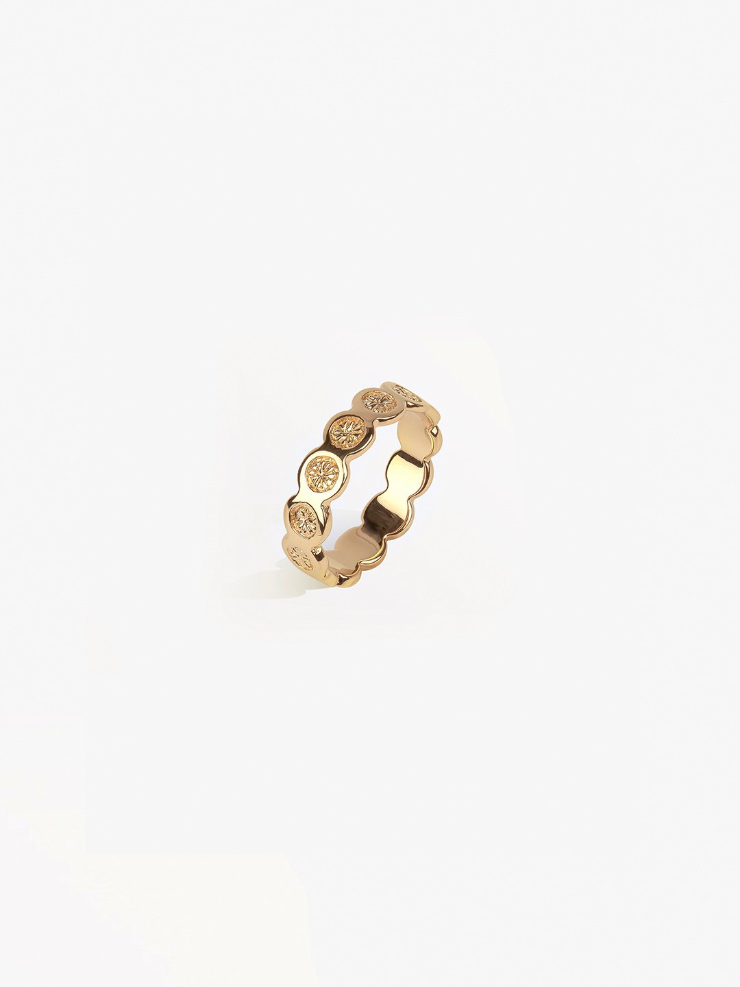 Brighten up your days with this nature-inspired gold stackable ring. With its charming sun design, this ring glows beautifully and will grab attention wherever you go. Wear this stackable sun ring on its own or match it with a solitaire pearl ring to create a beautiful contrasting look. Keep your nails in a neutral color to let this gorgeous gold stackable ring get the attention it deserves.