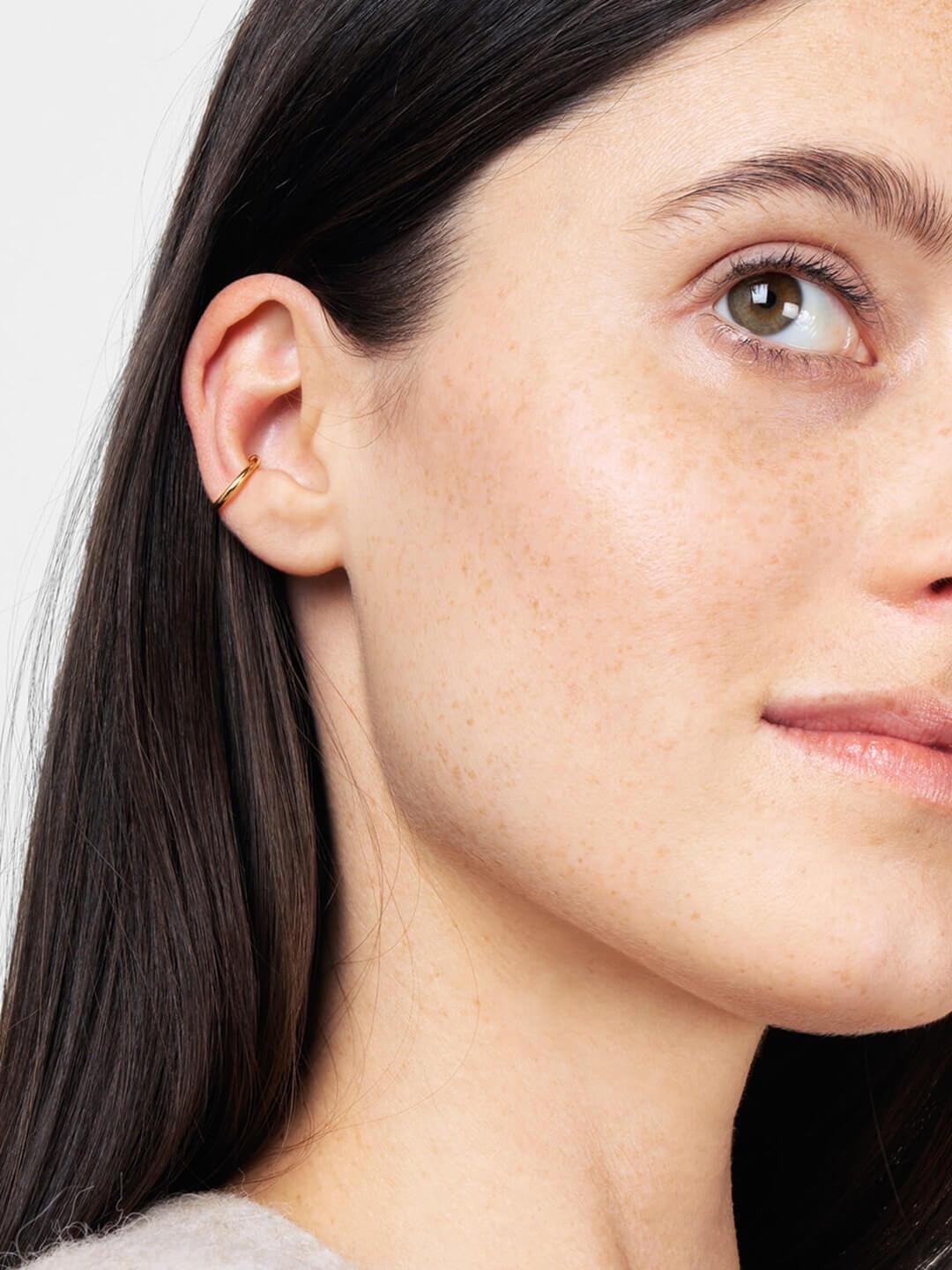 Giving a new meaning to jewelry essentials, this sterling silver simple ear cuff is how you add a glam twist to a minimal & sharp look. Inspired by the need for sleek simplicity, this simple ear cuff is handcrafted in silver and topped with a thick 18K gold layer. Take your jewelry essentials off-the-beaten-path and grab this gold ear cuff before it’s gone.