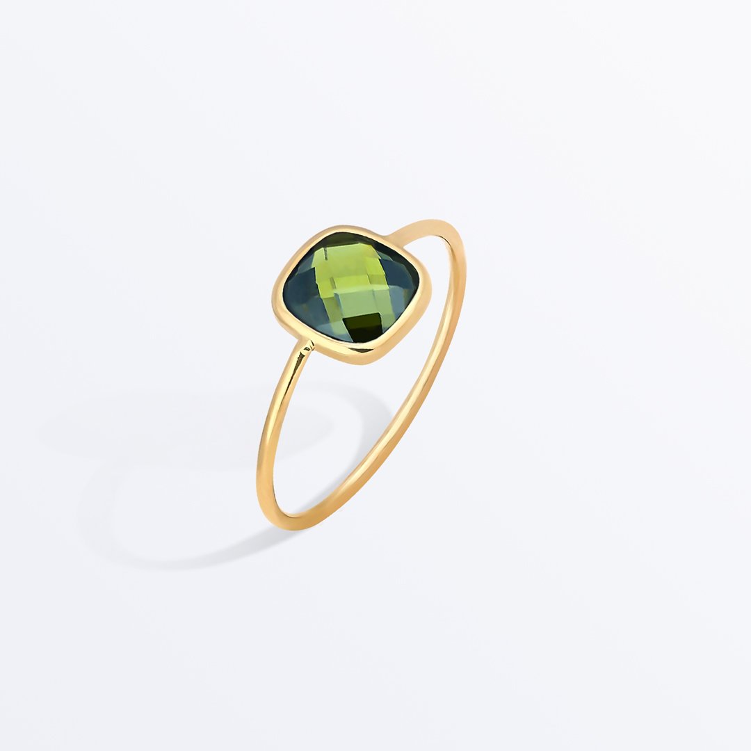 With a chic olive green hue and a beautiful sparkle, this green crystal ring is both gorgeous and very elegant. Featuring a green crystal gem in a bezel setting, this gold gemstone ring takes “classy” to the next level. Wear this fab green crystal ring with a light pink dress, a solid gold cuff bracelet and rose quartz earrings to create a beautiful contrasting look.