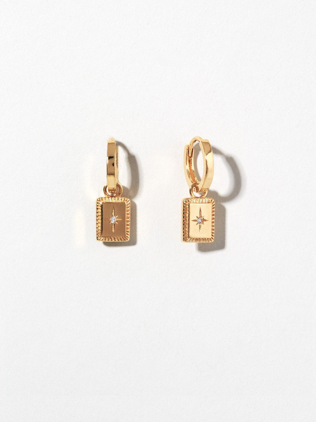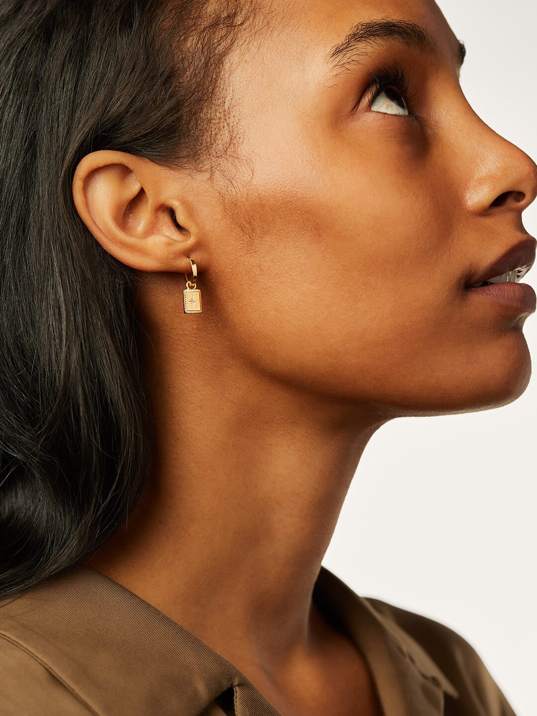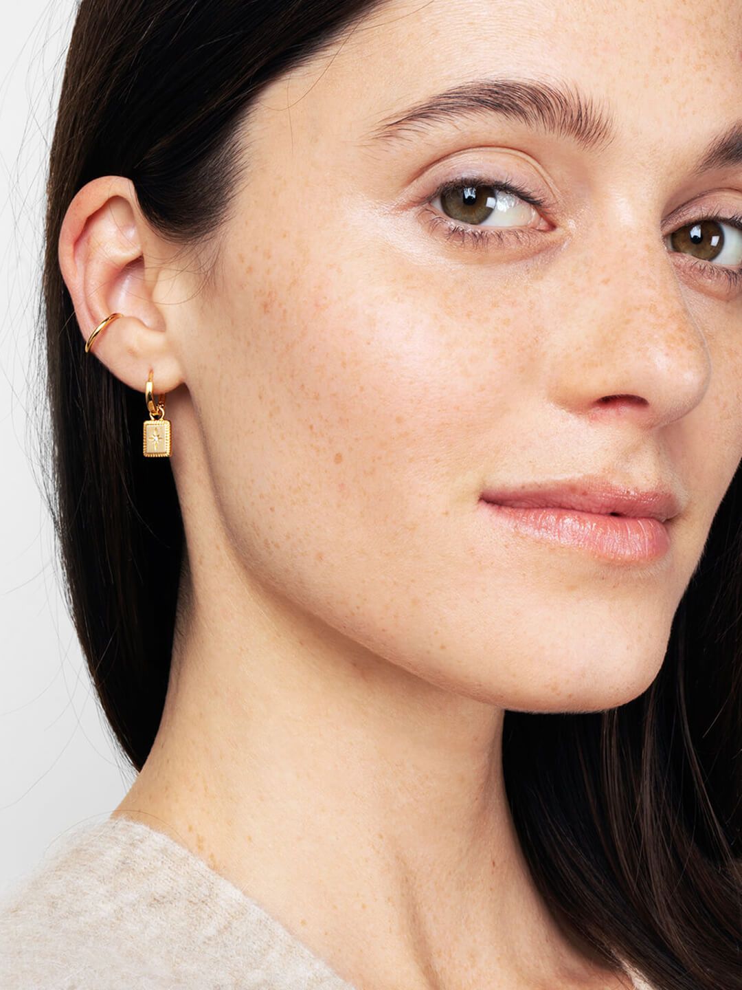 Recently featured on VOGUE, these sleek gold huggie hoops are made of recycled sterling silver and will quickly become your favorite good luck earrings. Inspired by the mystic designs of talisman jewelry, these gold huggies hoops feature a gorgeous charm with a center sparkling cubic zirconia gem. Try them on and watch your style get a fresh upgrade.