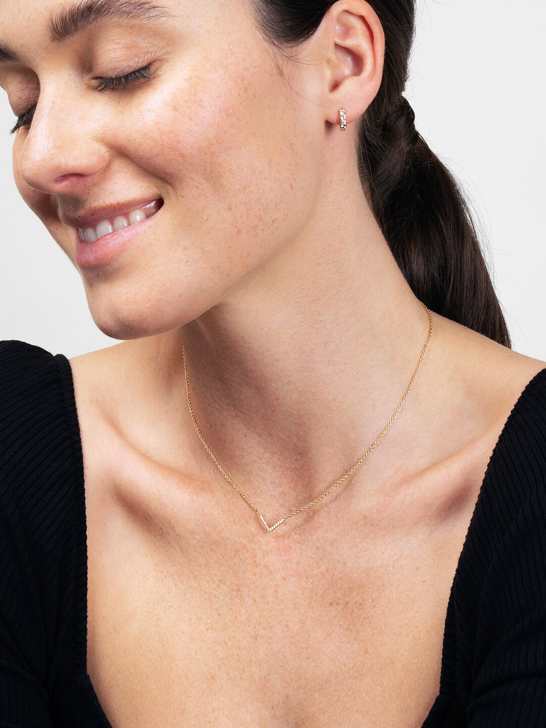 Meet your next jewelry obsession - this V-shaped sterling silver necklace with a pavé gemstone focal point. Handcrafted by the finest jewelers in recycled sterling silver and coated with 14k gold, this gemstone V-necklace features a cluster of sparkling cubic zirconia gems set in a chic pavé style. Make sure to get this glam necklace before it’s too late.