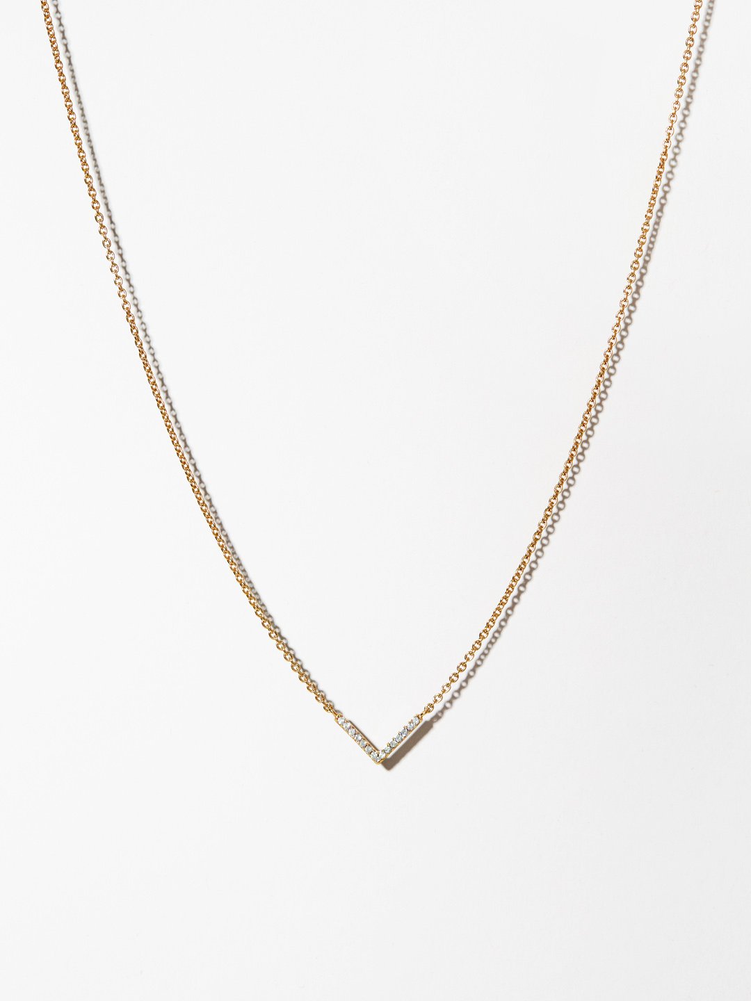• Tarnish-resistant sterling silver V-necklace dipped in 14k gold